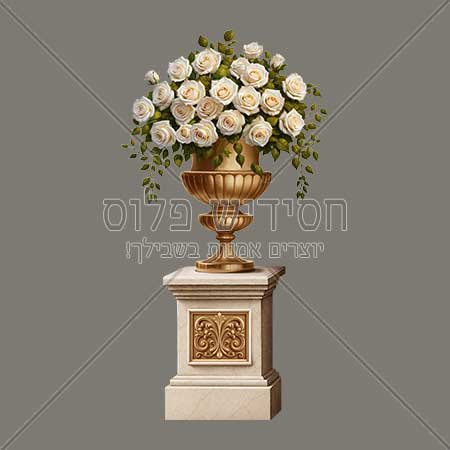 אגרטל ורדים, ורדים לבנים, אגרטל זהב, יוקרה, קלאסי, זר פרחים, עיצוב חתונות, הזמנות, כרטיסי ברכה, עיצוב אלגנטי, פרויקט גרפי.